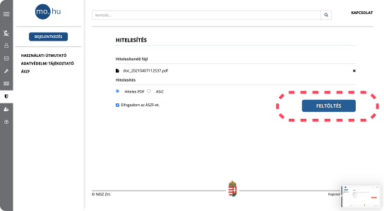 3. lépés - Fogadja el az ÁSZF-et és nyomjon a Feltöltés gombra!