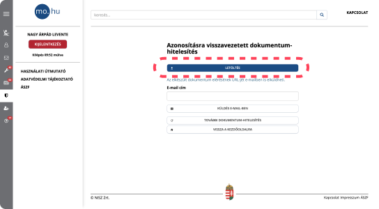 1.lépés - Ügyfélkapu megnyitása